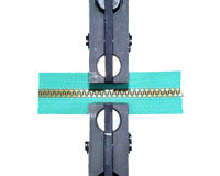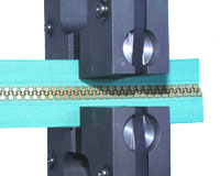 To determine ordinary zipper strength: a zipper chain is interlocked, pulled at a fixed speed at a right angle to the chain interlocked direction, and the resistance is measured.